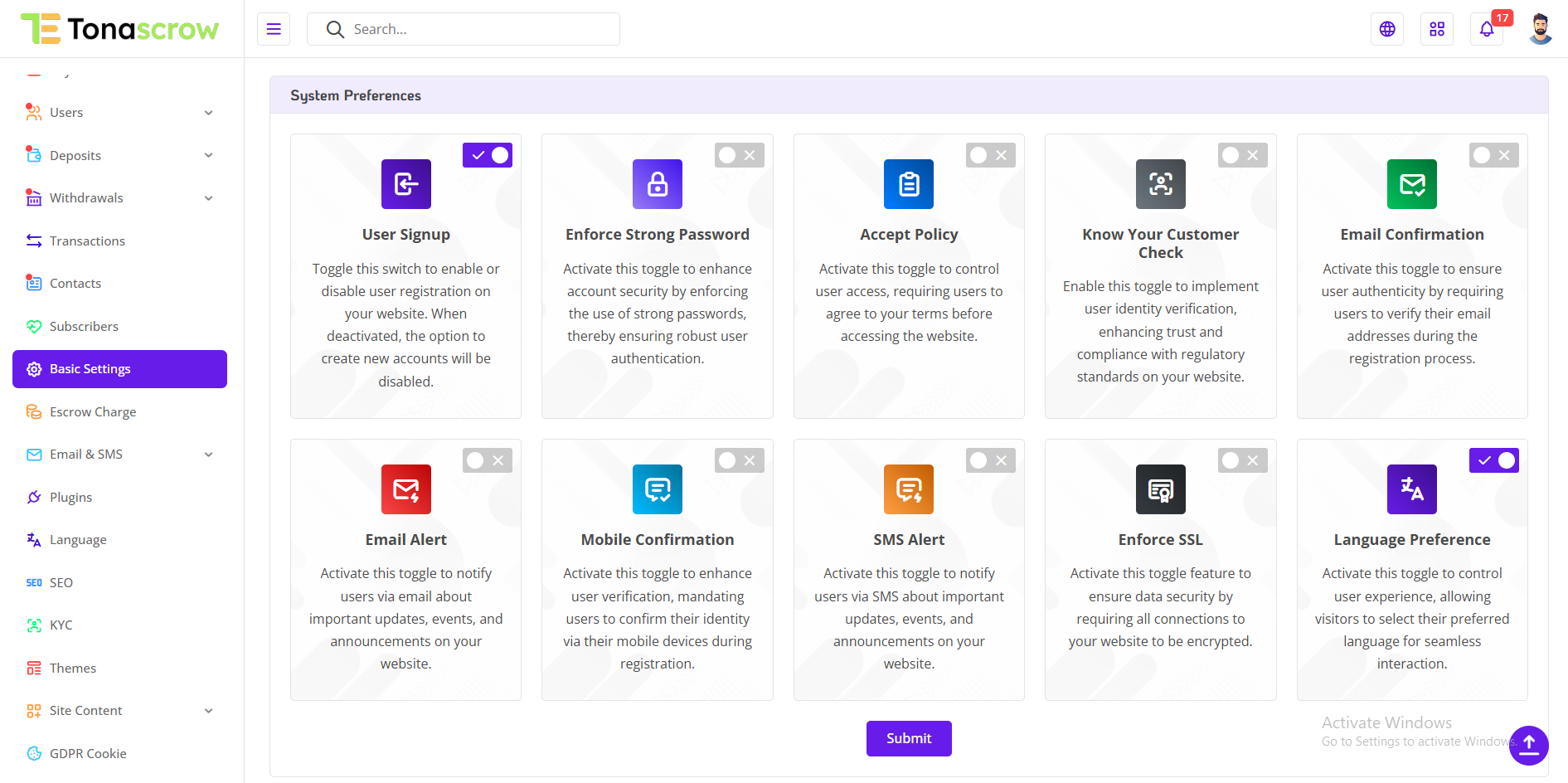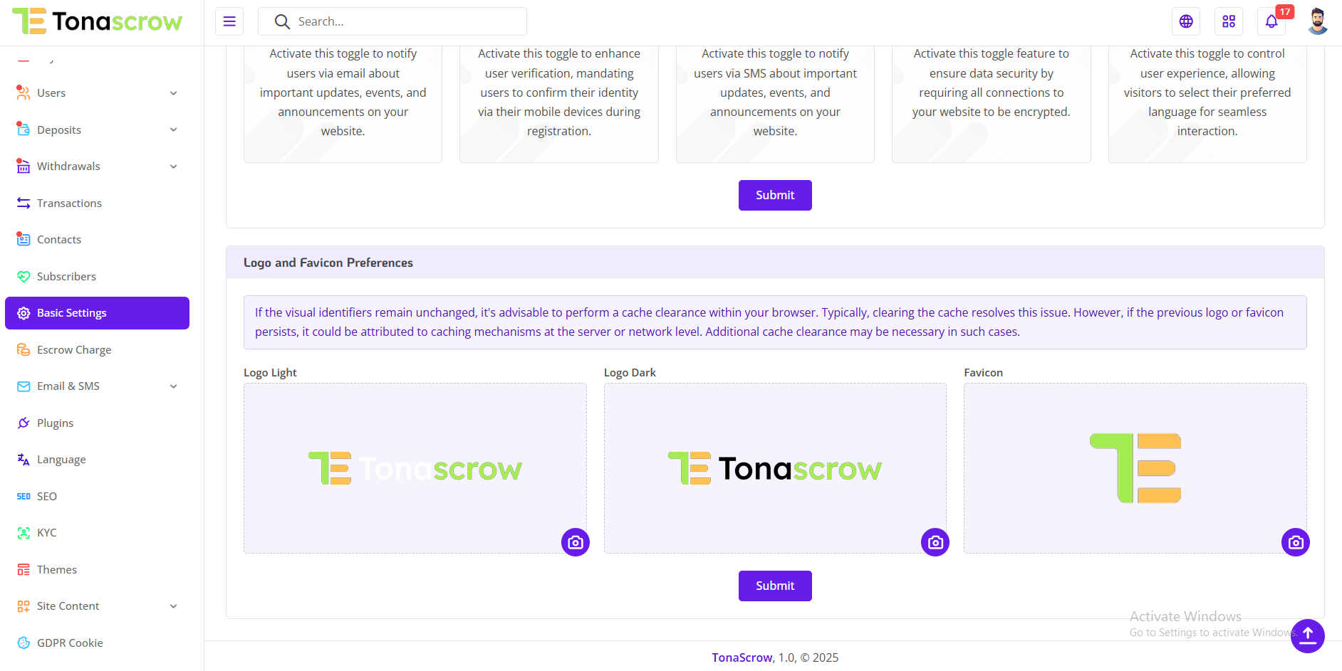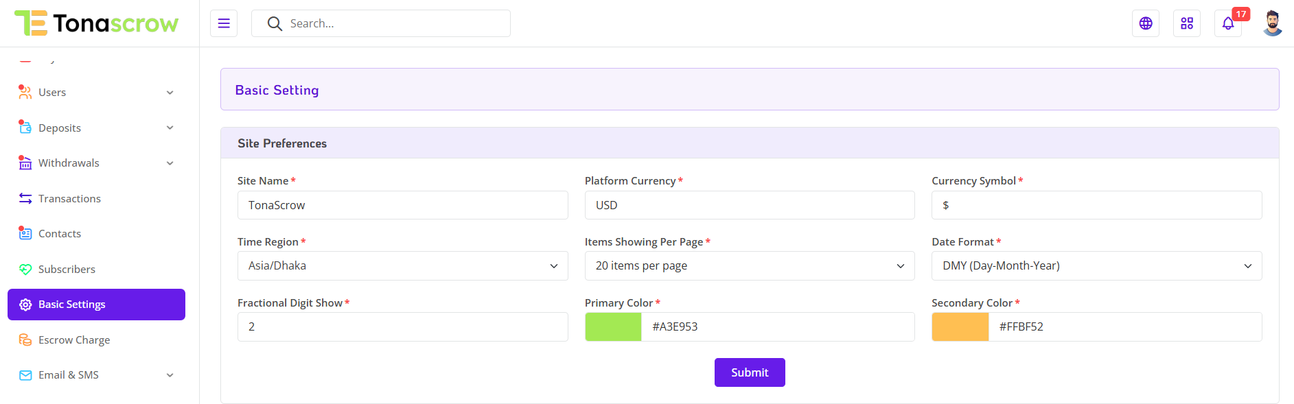 The Basic Setting Management System within our Admin Panel serves as a pivotal tool for administrators, allowing them to fine-tune and customize essential parameters that significantly impact the overall user experience. This feature-rich system comprises three key segments, each playing a crucial role in shaping the platform's identity and functionality.