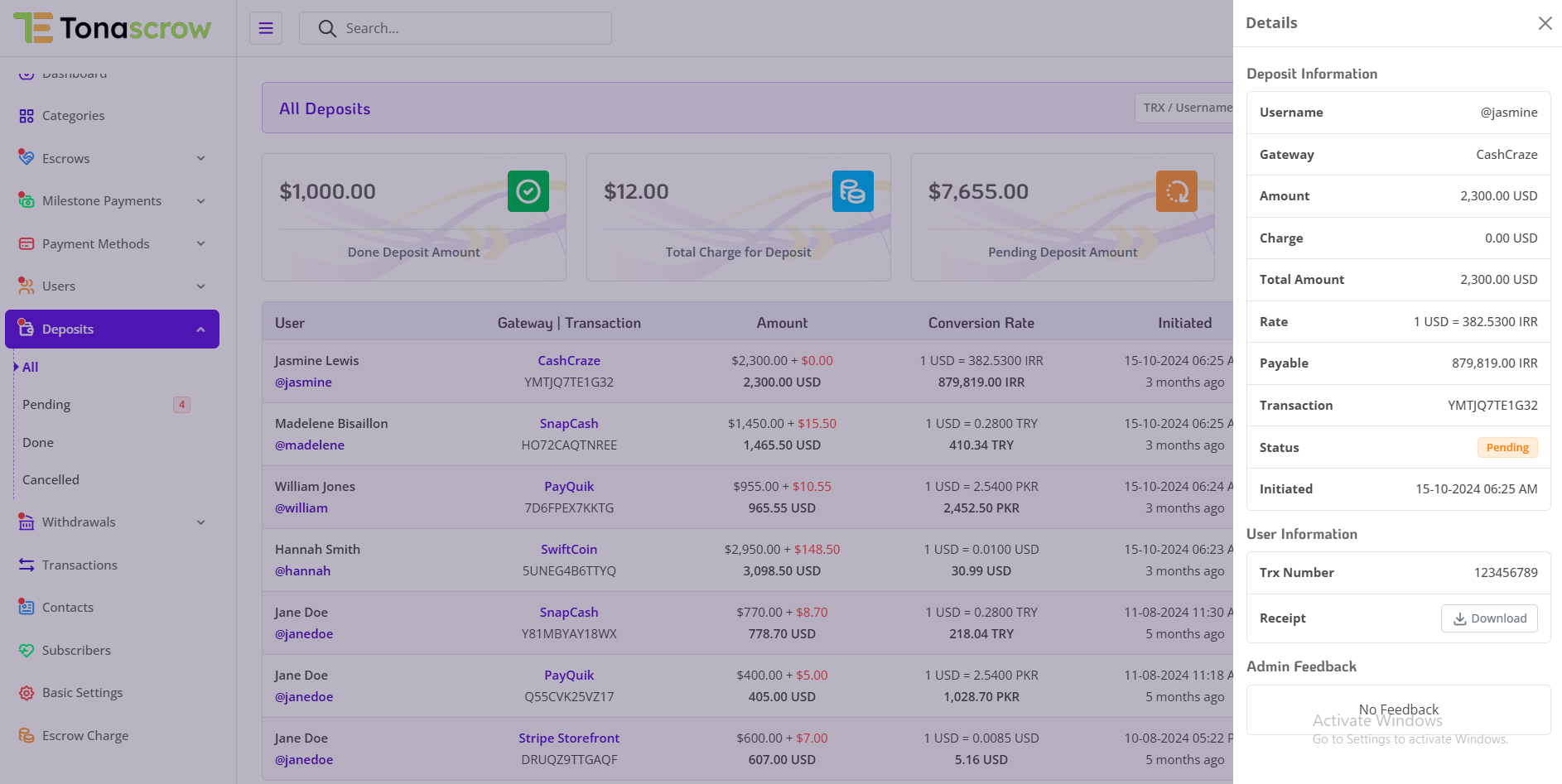 As an integral part of the TonaEscrow pay per click platform, the Deposit Management Module empowers administrators like you to oversee and optimize the process of deposits by users. This comprehensive guide is designed to equip you with the necessary tools and insights to efficiently manage deposit system.