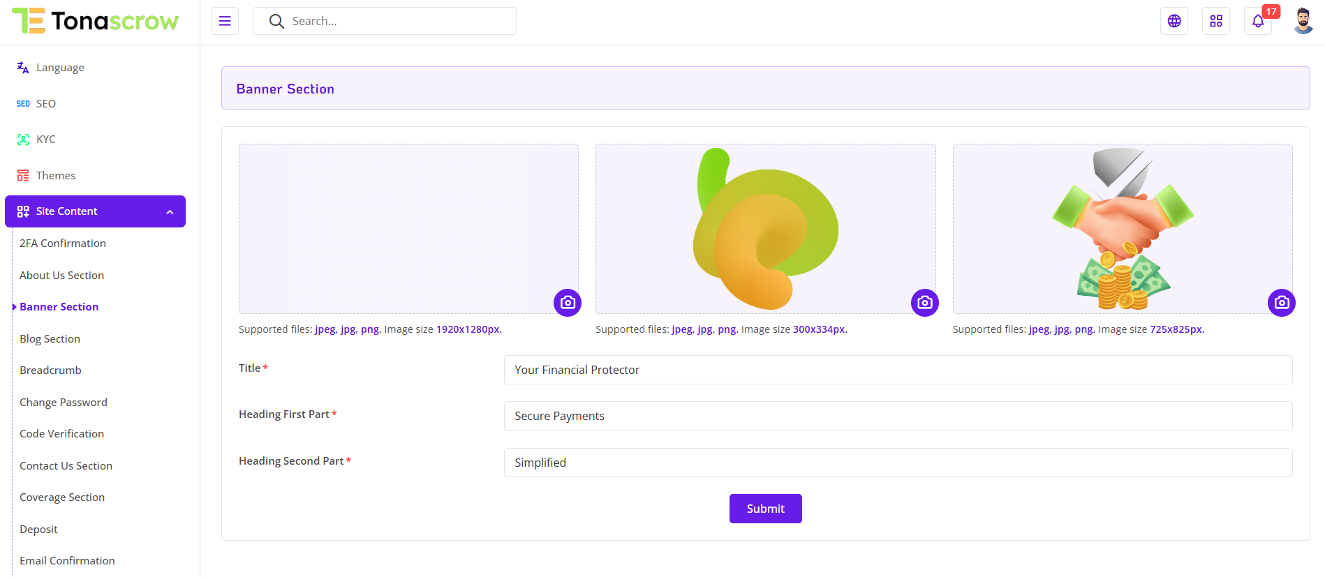 Delve into the dynamic Site Content Manager featured within your web application's Admin Panel, an instrumental tool designed to grant administrators full control over all visible content on the frontend. This super feature allows seamless customization of images, text, url, icons, and various other content elements, ensuring a tailored and engaging user experience..