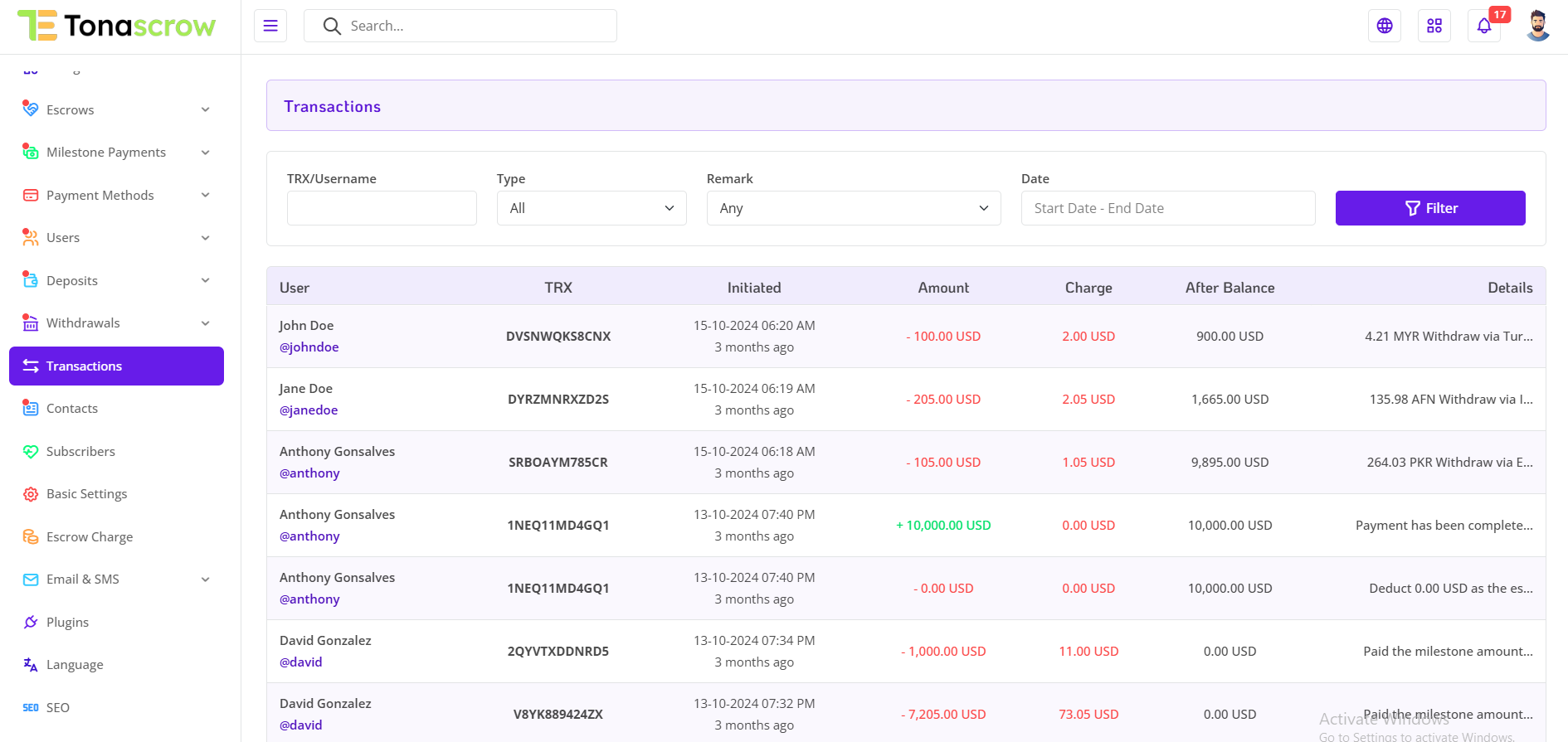 This robust set of features empowers administrators to efficiently search, track, and understand financial transactions. Whether seeking specific transaction numbers, usernames, or categorizing transactions by different types of remarks, the Transaction Log System enhances the overall visibility and control over financial activities on your platform.